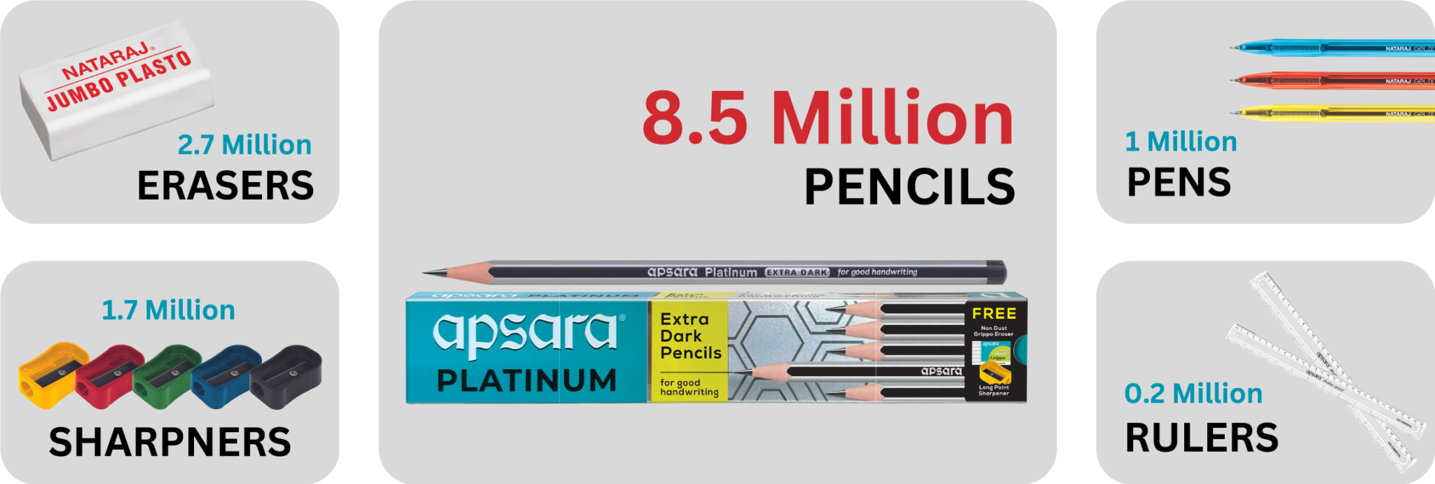 The company’s product range includes pencils, erasers, sharpeners, scales, art materials and ballpoint pens and their popularity extends beyond school to the home and office